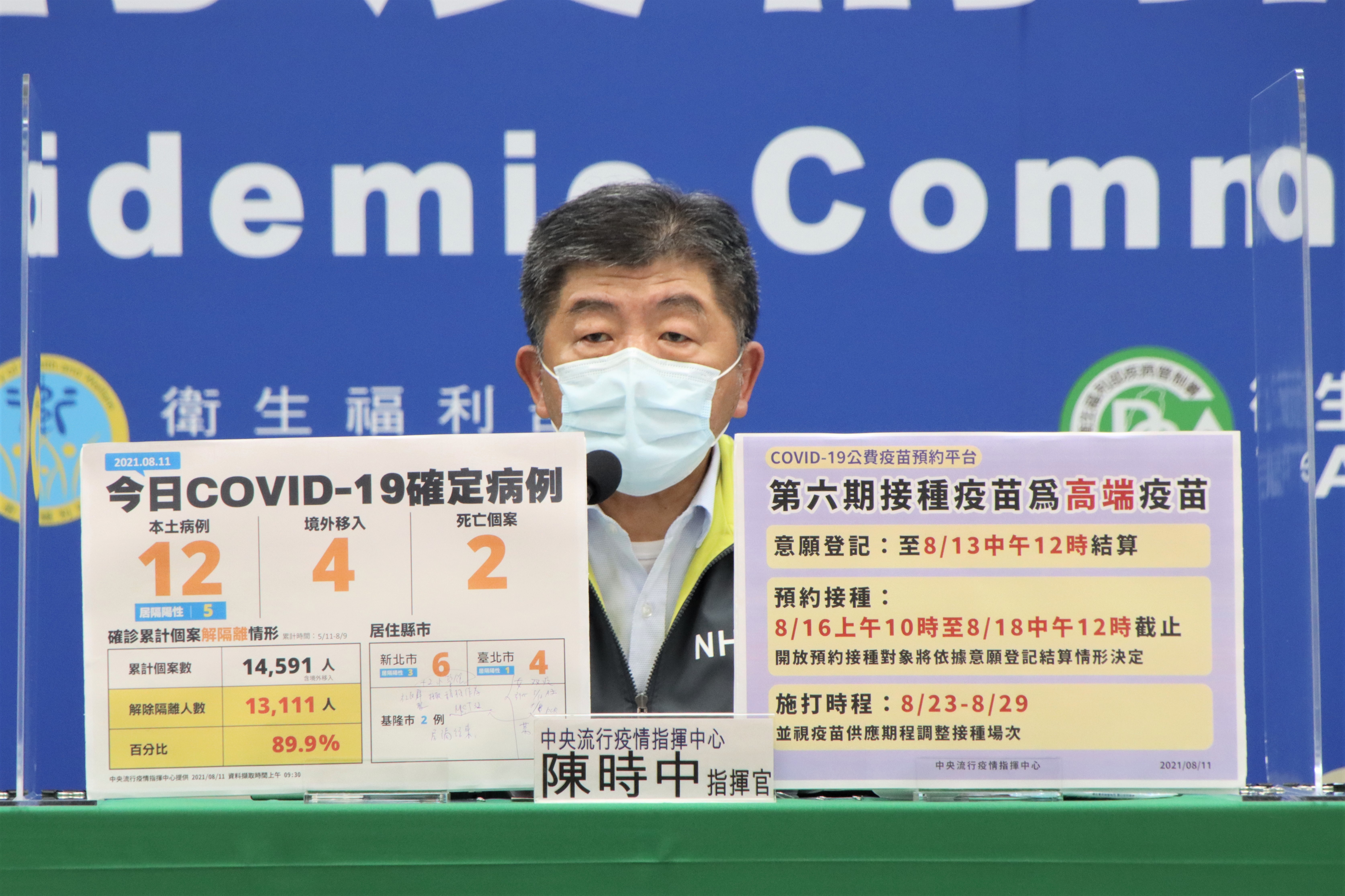 預約平台「何時能選到高端」?陳時中曝考量:時間還沒定 | 生活 | 三立新聞網 setn.com ※ 本網頁已閒置超過5分鐘,請點擊右上關閉鈕,即可關閉。. 第六輪接種將由國產高端疫苗上場,預約時間自8月16日上午10時起至8月18日中午12時截止,並於8月23日至8月29日施打。 台灣新生報 · 23 小時前 高端.